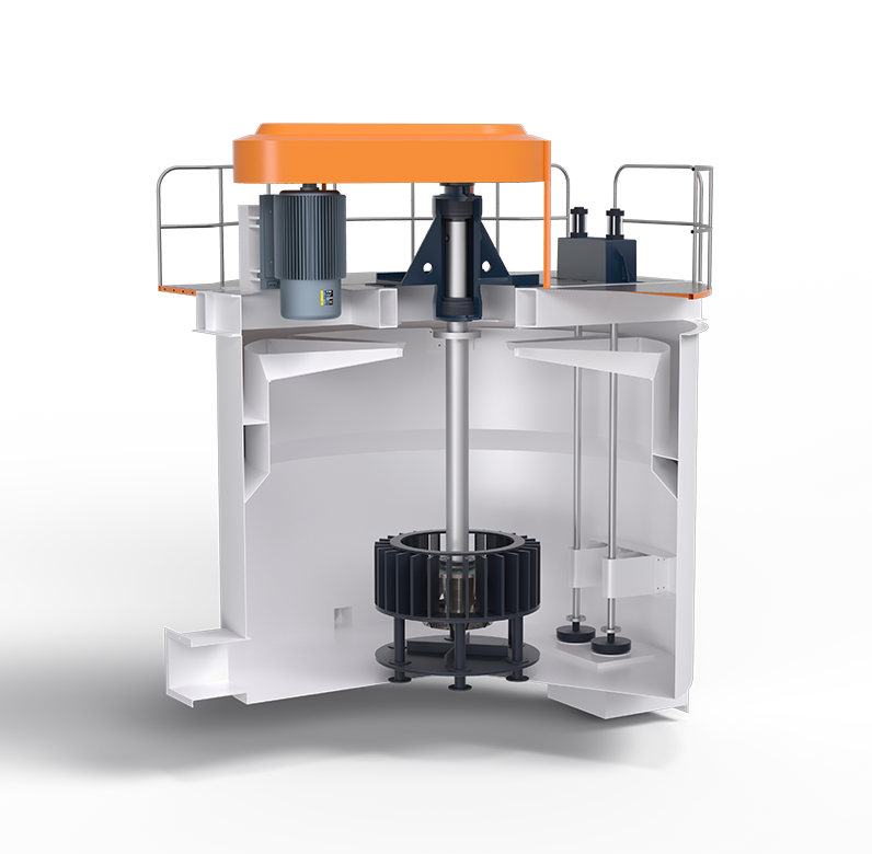 The tank volume of a single circular tank flotation machine is equivalent to that of multiple square tank flotation machines, which greatly simplifies the production process and reduces failure points, flotation plant area, maintenance costs and energy consumption.(When the tank volume is <5m³, SF series square tank flotation cell is recommended)